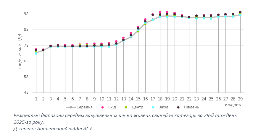 Представники м'ясопереробки констатують стабільно млявий перебіг торгівлі на тлі підвищення цін. Посилення внутрішньої конкуренції між постачальниками охолодженої свинини та активніші обстріли змушують низку операторів дещо скоротити обсяги заготівлі на прийдешні тижні аби уникнути перехідних залишків. Разом із тим, відзначають і зменшення пропозиції свинини через відчутніший тиск сезонних чинників. Зокрема, оператори повідомляють, що наявна пропозиція свинини ослаблена через нижчу середню забійну масу та/чи менші товарні партії, що й стимулює ріст цін. Останній, на думку більшості заготівельників, не обмежиться разовою корекцією, тож вже наступного тижня очікують щонайменше підвищення мінімальних цінових позначок.