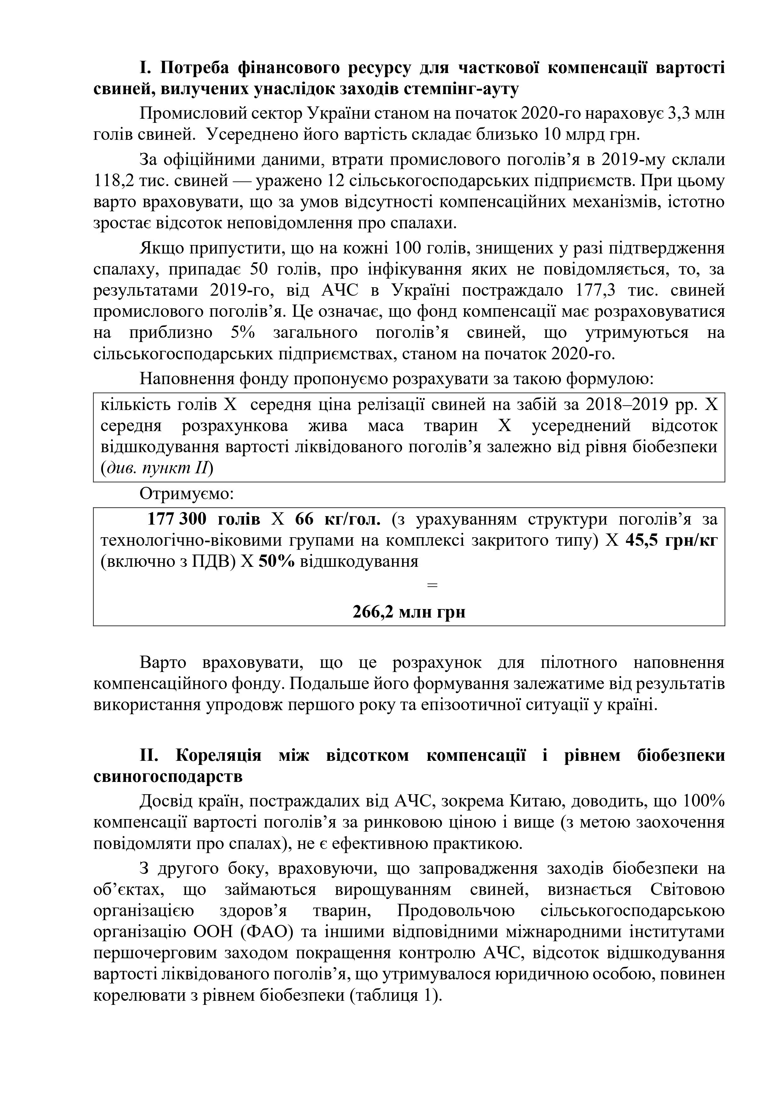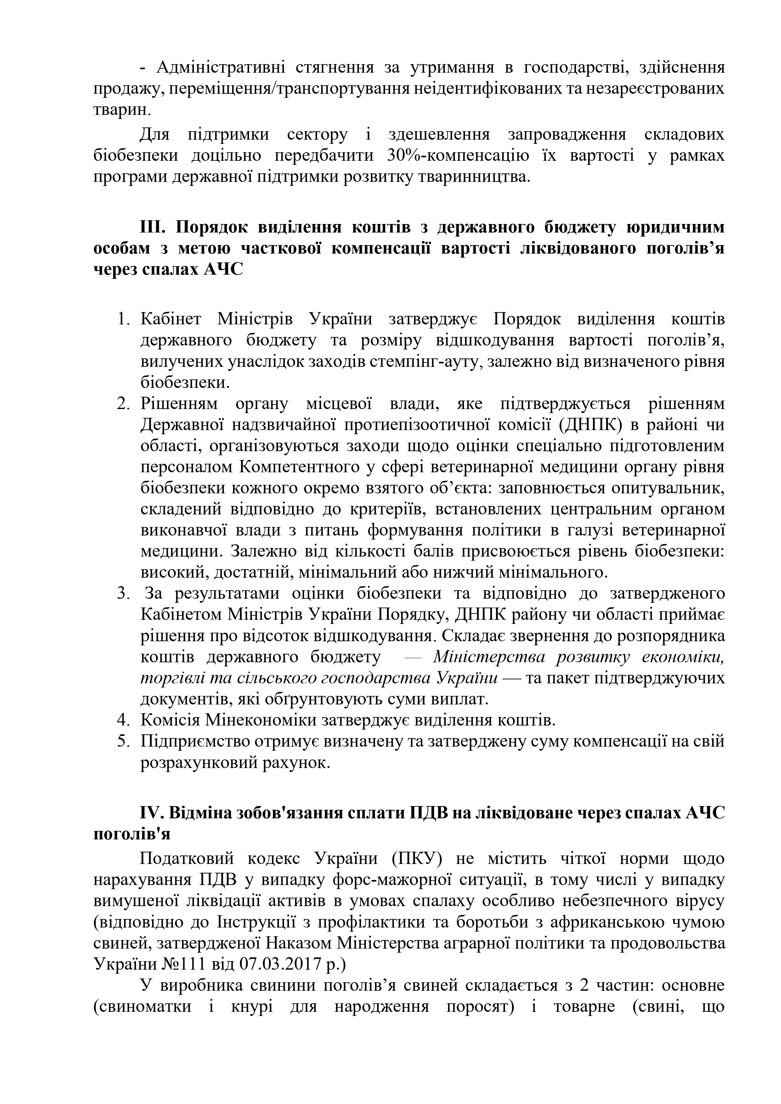 • Потреба фінансового ресурсу для часткової компенсації вартості свиней, вилучених унаслідок заходів стемпінг-ауту;