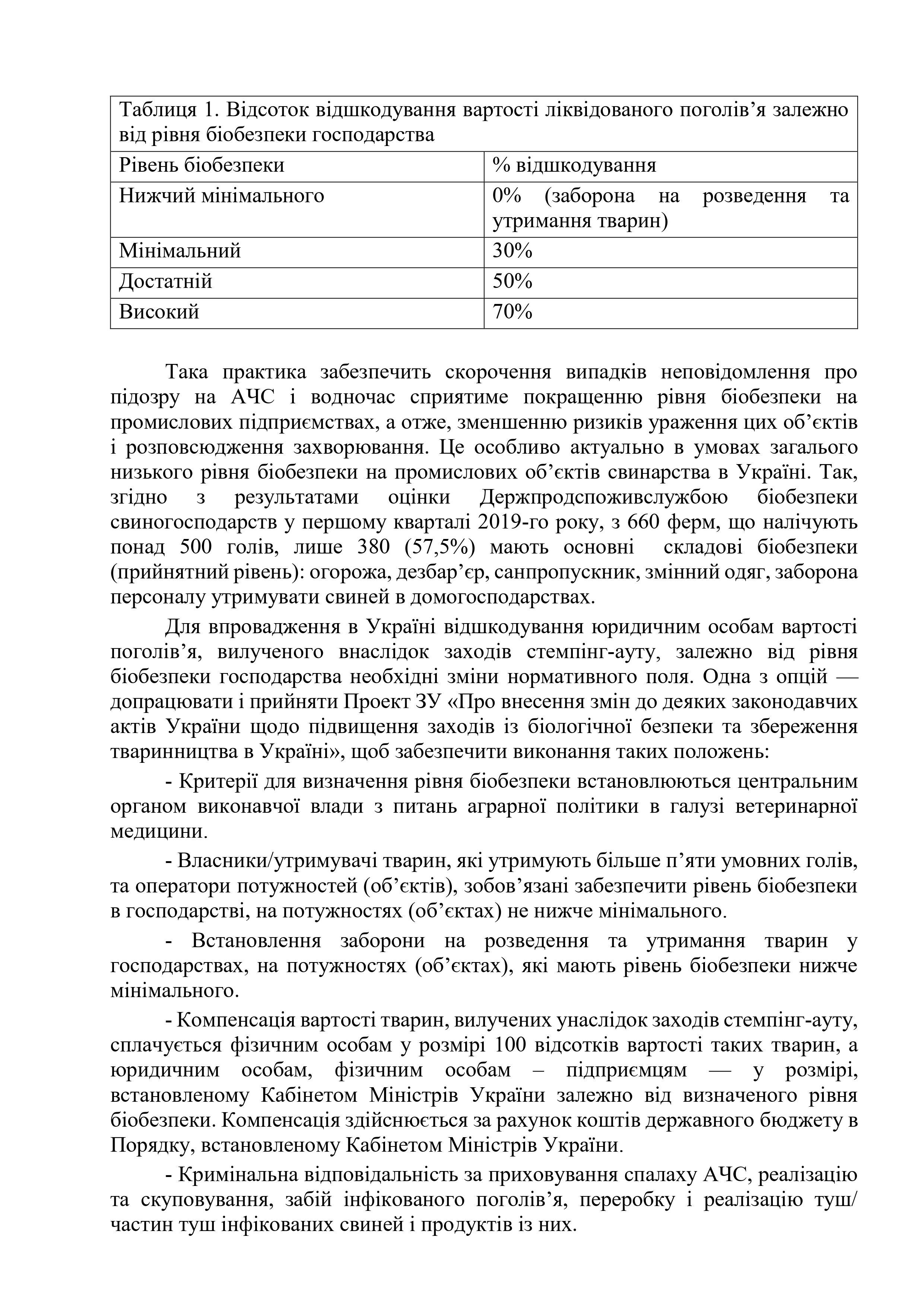 • Кореляція між відсотком компенсації і рівнем біобезпеки свиногосподарств;
