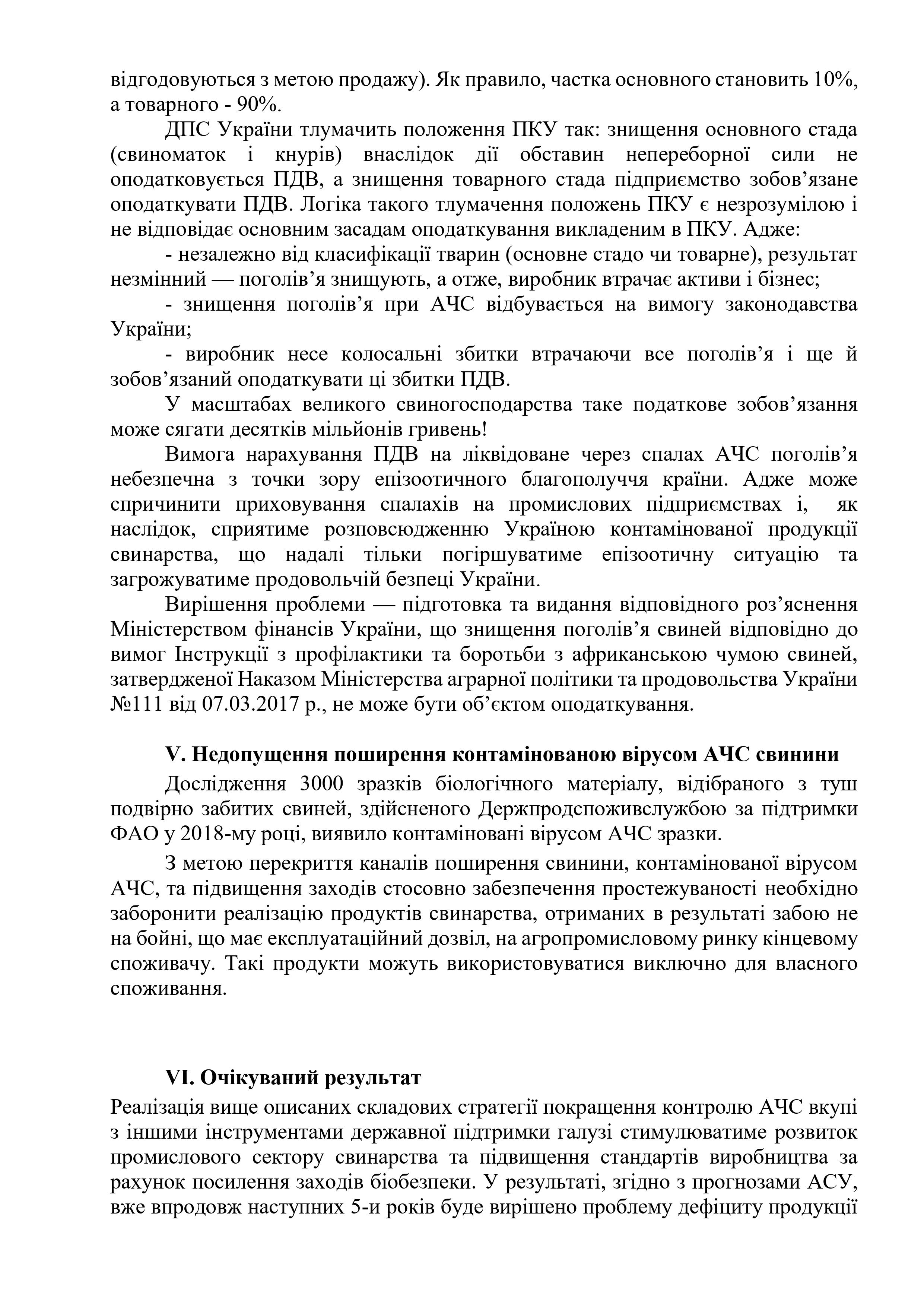 • Відміна зобов'язання сплати ПДВ на ліквідоване через спалах АЧС поголів'я.