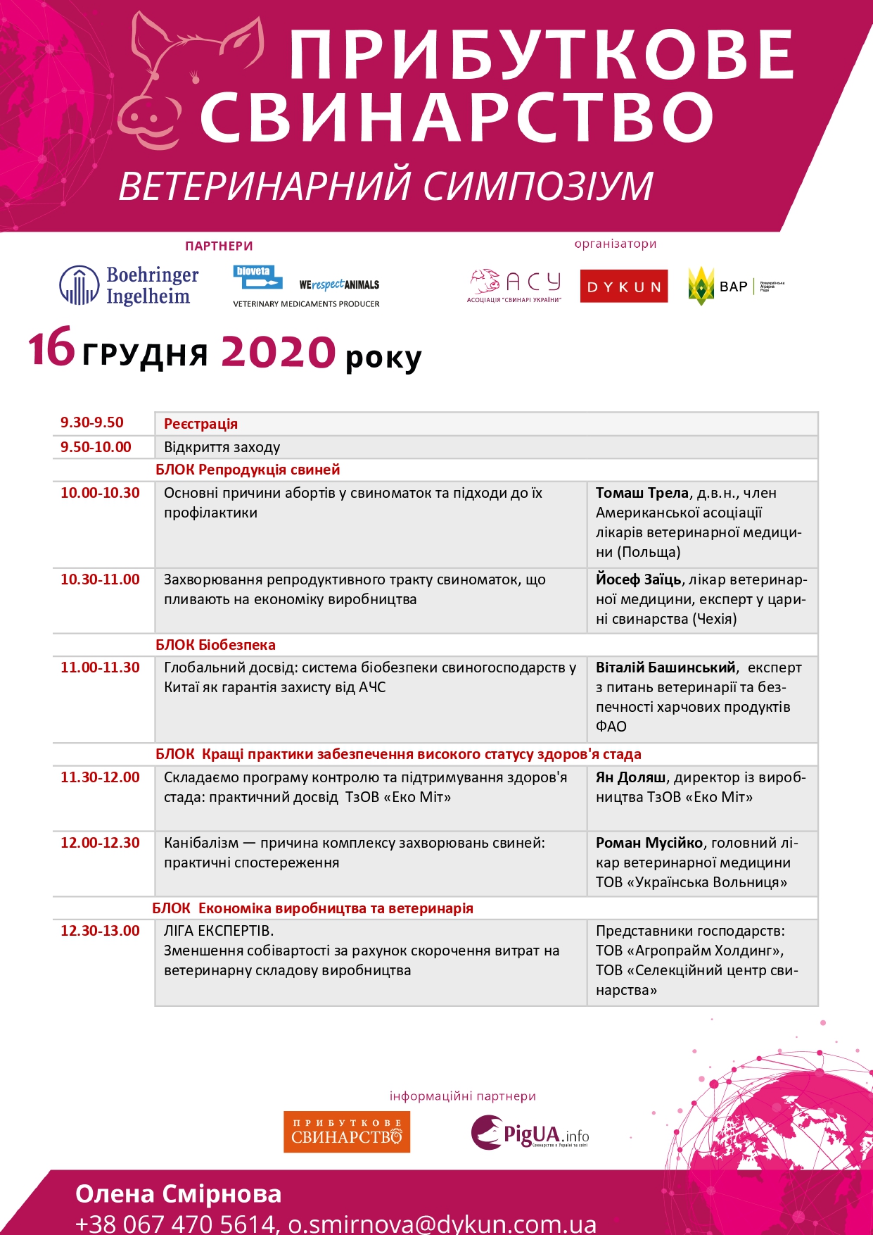 Провідні вітчизняні та іноземні спікери познайомлять з кращими практиками лікування респіраторних захворювань, хвороб ШКТ та репродуктивної системи, підтримання високого статусу здоров'я тварин та своєчасної діагностики можливих проблем.