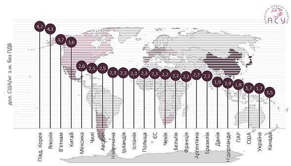 Середні ціни закупівлі свинини забійною масою в окремих країнах світу (у середньому за жовтень 2024 р.)