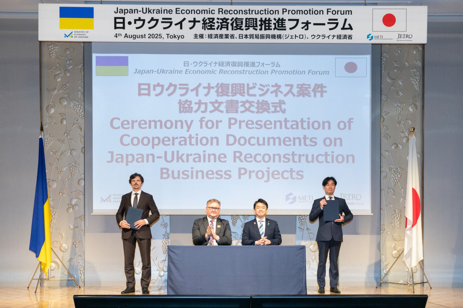 Примітка: Організація Об'єднаних Націй з промислового розвитку (ЮНІДО) реалізує програму зеленого відновлення промисловості України після впливу війни протягом 2024-2028 років. Проєкт «Зелене відновлення промисловості України шляхом передачі технологій та спільного створення нових підприємств з японськими приватними компаніями», що фінансується Міністерством економіки, торгівлі та промисловості Японії (METI), спрямований на підтримку відновлення промисловості країни та створення інноваційної екосистеми шляхом передачі технологій, нарощування потенціалу та спільного створення підприємств представниками українського та японського приватного сектору економіки.