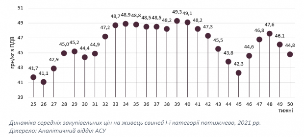 За даними Державної служби статистики України, станом на початок грудня кількість свиней у сільськогосподарських підприємствах - 3,61 млн гол. Це на 1,1% менше, ніж на відповідну дату минулого року