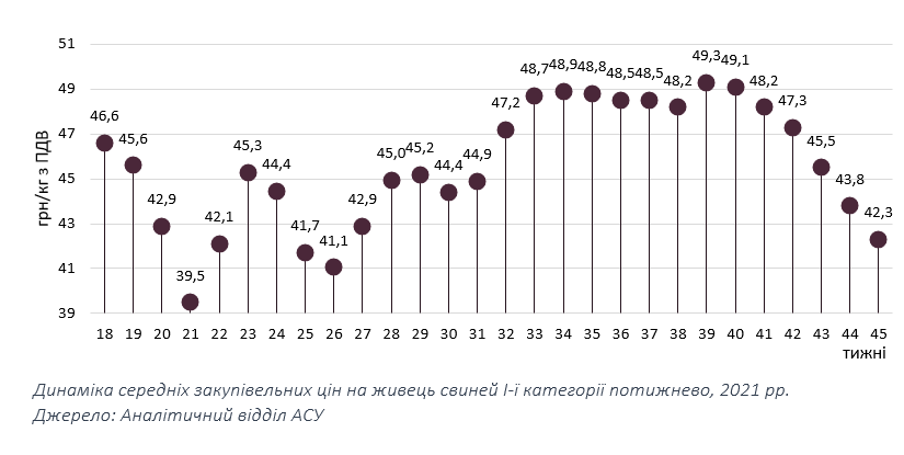 Враховуючи обмеженість пропозиції живця забійних кондицій, пожвавлення закупівельної активності та те, що значна частка м’ясопереробників не змогла задовольнити збільшену потребу в сировині цього тижня, більшість виробників свинини очікують, що ціна реалізації наступного тижня підвищиться до 44-45 грн/кг.