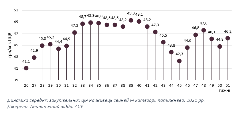Більшість представників м’ясопереробки також відзначають передсвяткову активізацію торгів та очікують підвищеного попиту на свинину з боку кінцевих споживачів напередодні Нового року. З огляду на відсутність ажіотажної пропозиції товарних свиней та очікування кращих результатів реалізації, більшість переробників очікують продовження висхідного руху закупівельних цін.