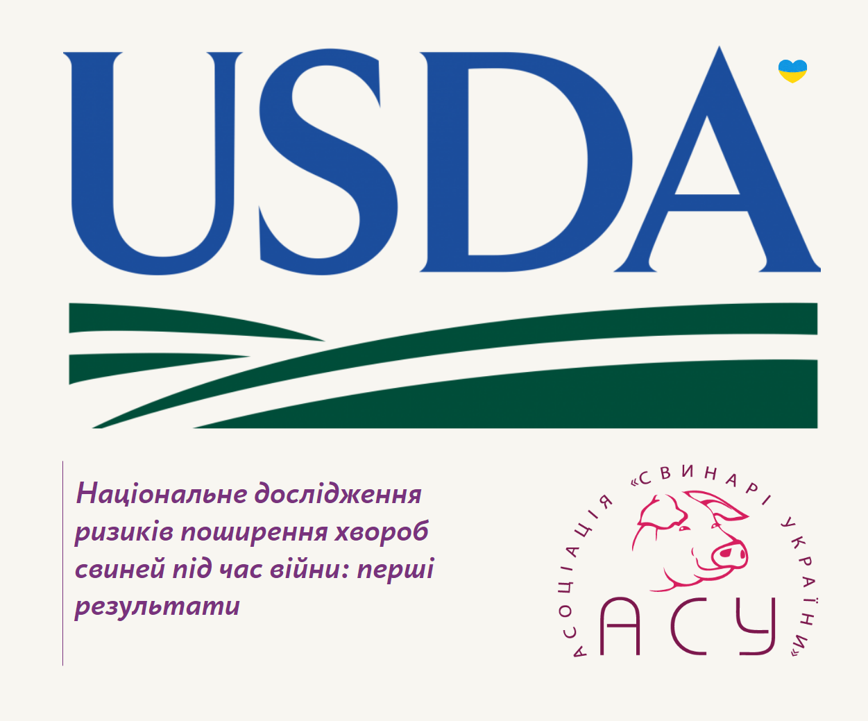 Асоціація «Свинарі України» (АСУ) у співпраці з Департаментом сільського господарства зарубіжних країн Міністерства сільського господарства США (FAS USDA) реалізують в Україні проєкт «Забезпечення здоров'я тварин в Україні».