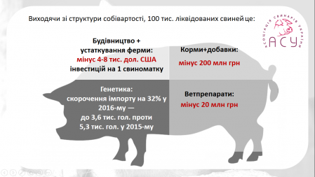 А загалом, якщо будемо говорити про збитки, то лише за 2016-й „африканка“ коштувала Україні в цілому 5 млн доларів», — зазначила віце-президент Асоціації «Свинарі України» Оксана Юрченко.