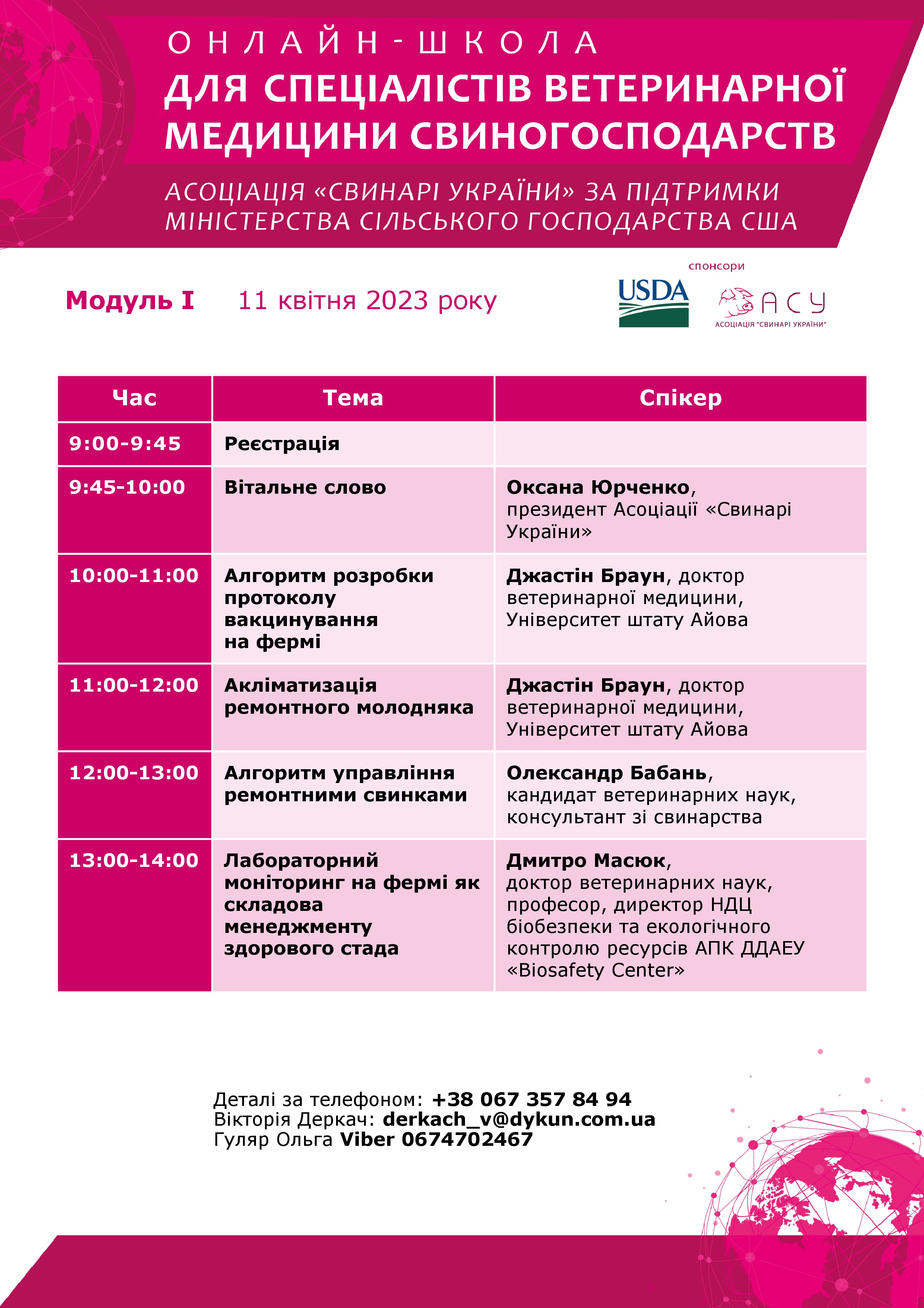 11-го квітня Асоціація «Свинарі України» (АСУ) спільно з Міністерством сільського господарства США (USDA) проведе перший модуль навчання для ветеринарів свиногосподарств у рамках грантової співпраці.