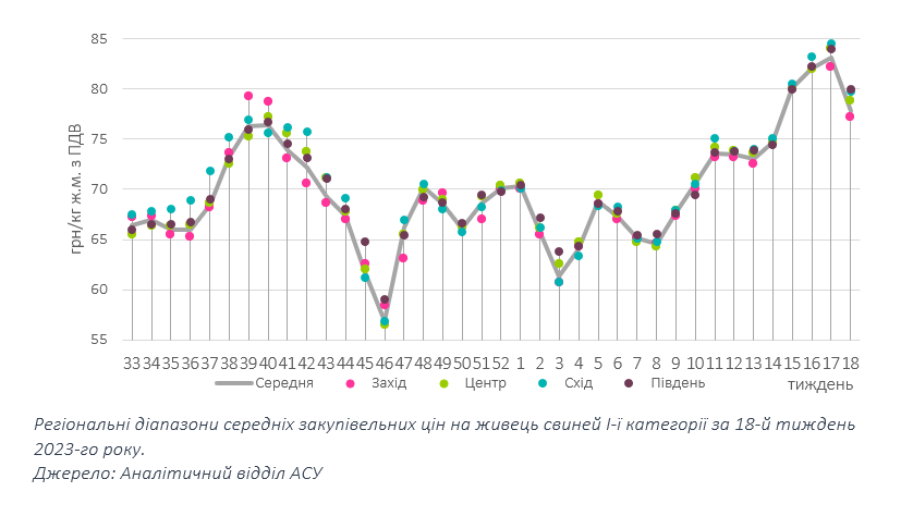 Представники м’ясопереробної галузі відзначають, що зниження цін закупівлі свинини спостерігається на тлі послаблення реалізації після великодніх свят: із завершенням святкувань споживча активність у роздрібній торгівлі знизилася, тож продажі повернулися до більш-менш середньостатистичних об’ємів. З іншого боку, сформовані запаси сировини підприємств глибокої м’ясопереробки дозволили їм наразі взяти «паузу» в заготівлі. Початок сезону пікніків цьогоріч дещо відтерміновують відсутність тривалих святкових вихідних на початку травня та дещо нестабільна погода. Проте із приходом тепла, на думку окремих переробників, споживча активність має пожвавитися.