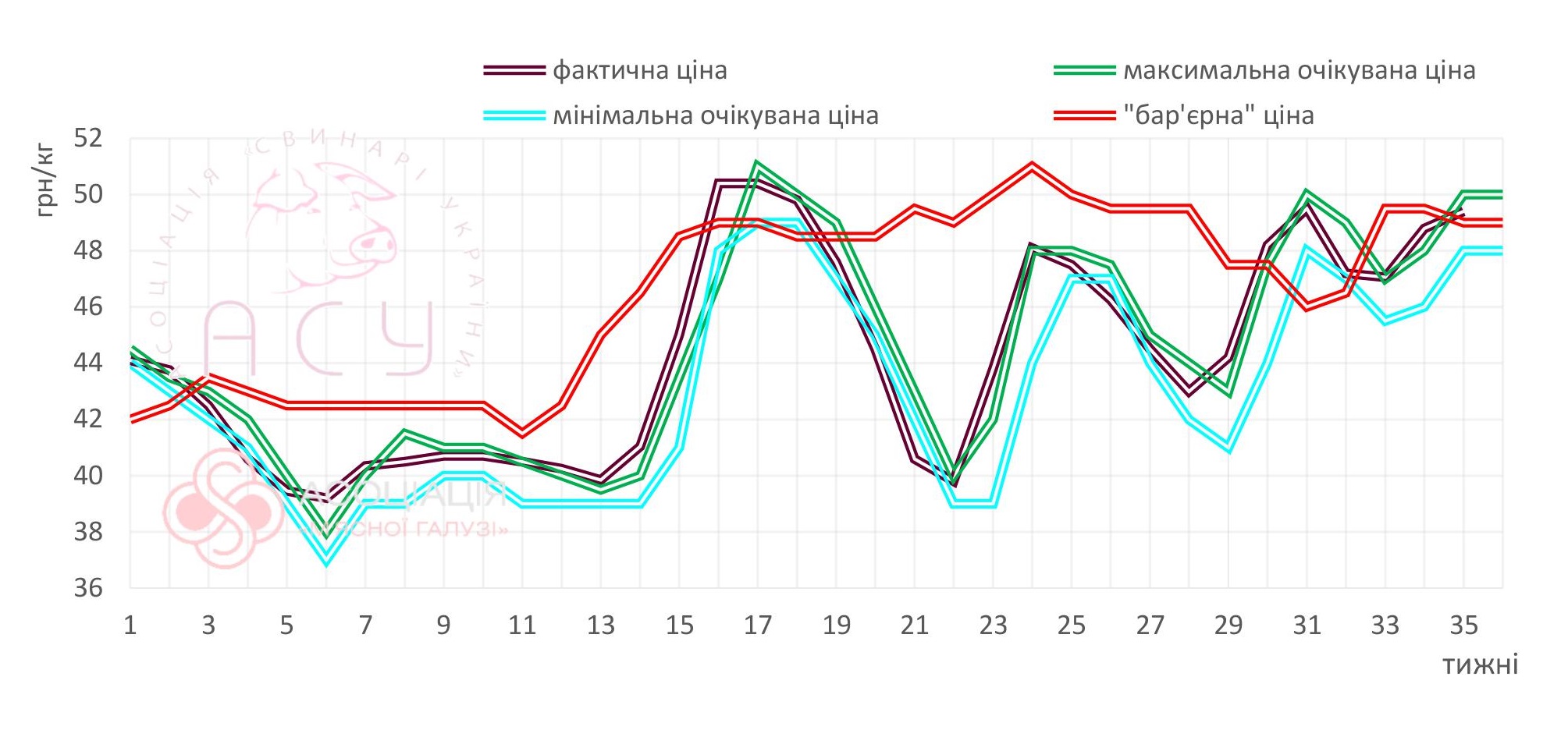 Незначне підвищення цін закупівлі відбулося у наслідок позитивного коливання планових цін від окремих постачальників свинини, які «розписали» товарне поголів'я на 0,5-1 грн/кг дорожче ніж тижнем раніше. Тим не менш, підвищення цін мало не такий масовий характер, як до цього, а очікування м'ясопереробників реалізувалися: м'ясних свиней забійних кондицій у кінці літа закуповували по 48-50 грн/кг. Планові продажі попереднього тижня, обмеженість пропозиції живця через сезонні фактори та тимчасово посиленіша конкуренція серед закупівельників допомогли ціні укріпитися.