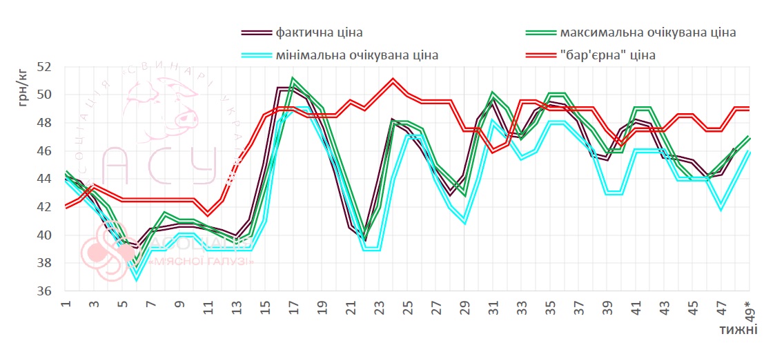 Гравці ринку живця очікують, що на цьому висхідний рух цін не зупиниться. Так, опитування серед учасників Асоціації «М’ясної галузі» свідчить про намір переробників закуповувати живець на наступний тиждень по 46-47 грн/кг. З іншого боку, виробники свинини відзначають, що під кінець поточного тижня закупівельники демонструють готовність до вищої максимальної позначки цінового діапазону. Тож досить вірогідно, що з початком зими верхня межа цінового коридору перетне рівень 48 грн/кг.