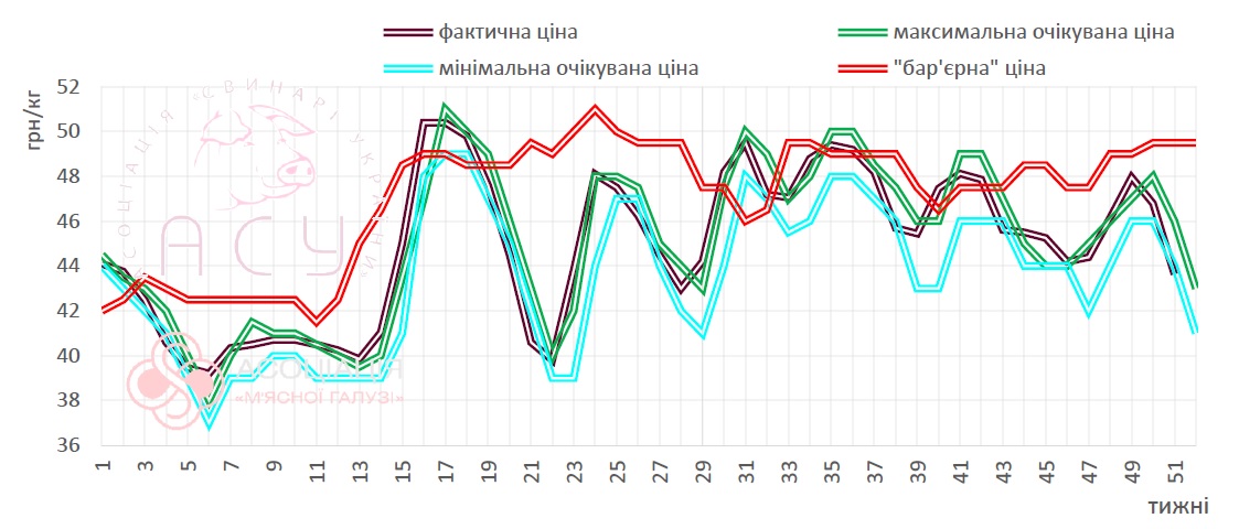 Для багатьох операторів вітчизняного ринку свинини така динаміка була неочікуваною. Так, за підсумками опитування учасників Асоціації «М’ясопереробної галузі», більшість закупівельників на початку грудня очікували, що товарні свині забійної кондиції коштуватимуть 46-49 грн/кг. Проте вже минулого тижня фактичний рівень закупівельних цін відчутно понизився: більшість товарних партій закуповували по 45-48 грн/кг, а епізодично звучали й нижчі ціни закупівлі.