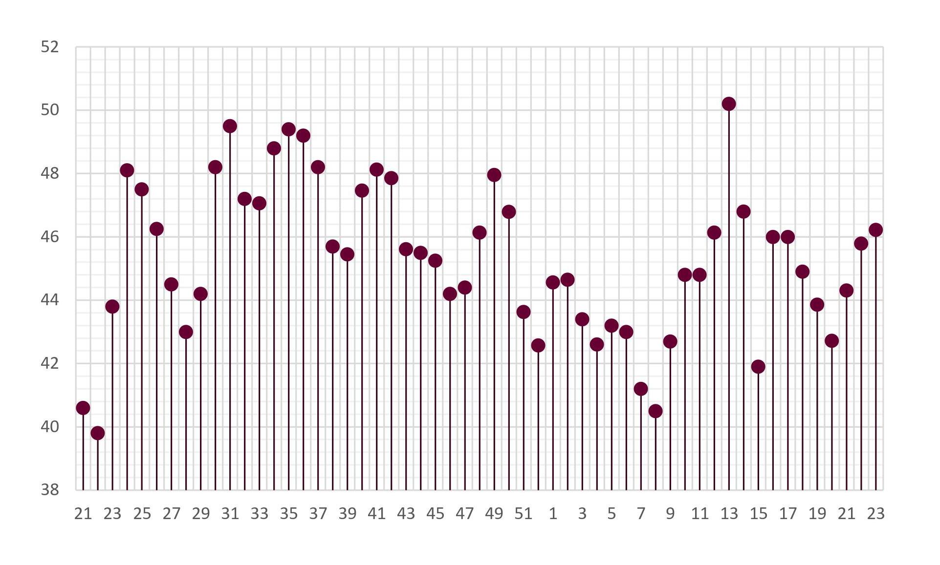 Динаміка закупівельних цін на живець свиней І-ї категорії потижнево, 2019-2020 рр.