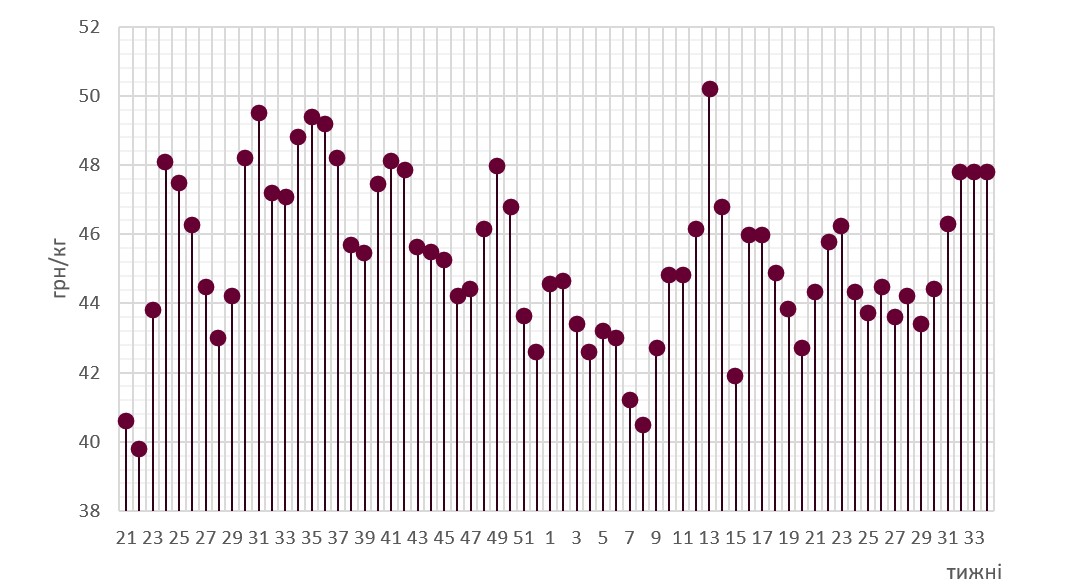 ​Ринок живця, 34-й тиждень: ціна тримається у межах 47-48,5 грн/кг