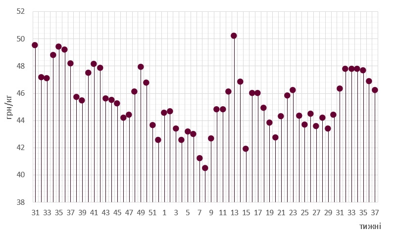 Ринок живця, 37-й тиждень: незначне послаблення цін