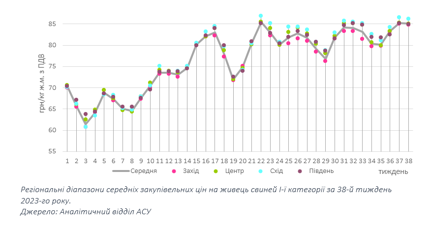 Сезонне відновлення пропозиції кондиційної свинини, якого очікують представники м’ясопереробної галузі, поки не має повсюдного характеру, що підтримує ціни на високому рівні. Утім окремі заготівельники відзначили поступове «повернення» тварин до стандартних забійних кондицій, що сприяє вирівнюванню попиту та пропозиції свинини. Тож низка переробників з різних регіонів країни констатує відносну сталість реалізації. Інші, навпаки, очікують сезонного послаблення реалізації, яке традиційно спостерігається у кінці вересня та у жовтні по мірі переорієнтації населення на альтернативні види білку та підготовку до нового опалювального сезону. Утім поки сезонні тенденції не так яскраво виражені, стриманість пропозиції свинини слугуватиме підтримкою для цін закупівлі.