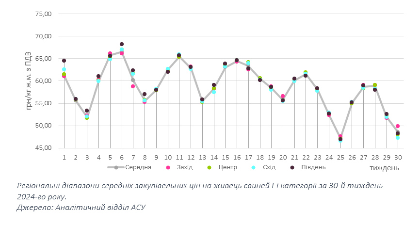 У третій декаді липня зниження цін на живець свиней забійних кондицій продовжилось, свідчать результати щотижневого моніторингу закупівельних цін аналітичного відділу Асоціації «Свинарі України».