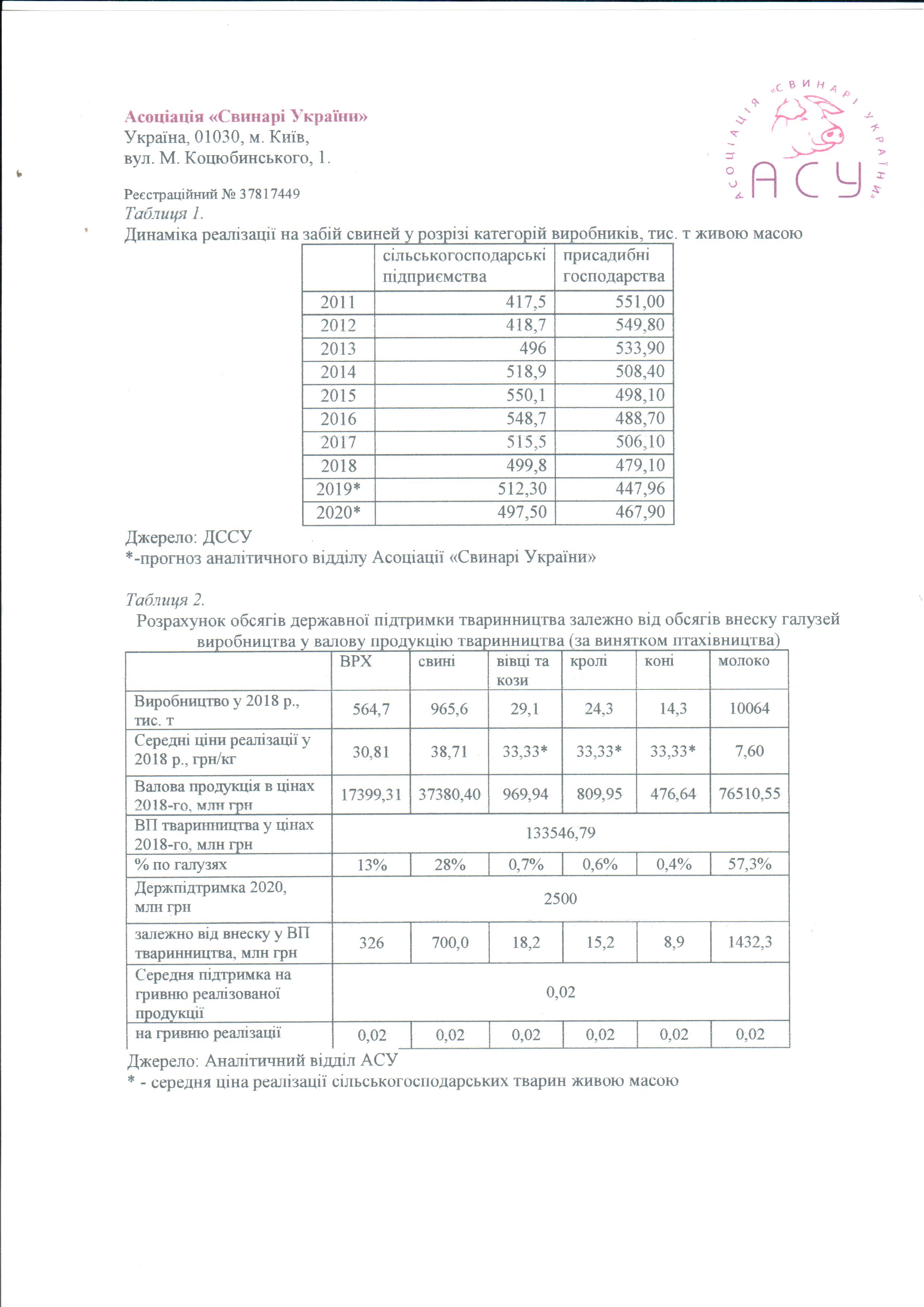 Виходячи з обсягу коштів, виділених на державну підтримку галузей тваринництва — 2,5 млрд грн — та питомої ваги свинарства у валовій продукції тваринництва (за винятком продукції птахівництва) за результатами минулого року, АСУ пропонує застосувати такі механізми підтримки: