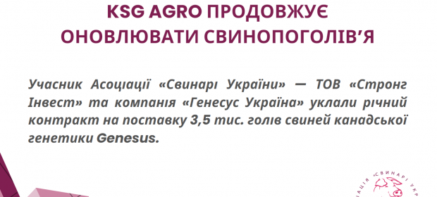 Учасник Асоціації «Свинарі України» — ТОВ «Стронг Інвест» та компанія «Генесус Україна» уклали річний контракт на поставку 3,5 тис. голів свиней канадської генетики Genesus.