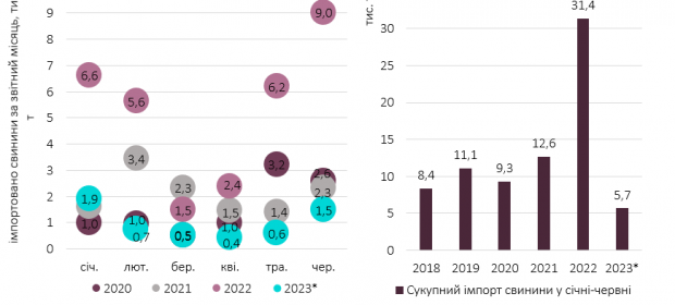 За попередніми даними митної статистики, упродовж січня-червня до України надійшло 5,7 тис. т свіжої, охолодженої та мороженої свинини. Це у 5,5 разів менше ніж рік тому, зауважують в Асоціації «Свинарі України».