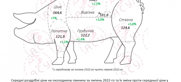 У липні свинина в роздрібі подорожчала на 2,7% проти червня. Такі підсумки моніторингу цін національних мереж супермаркетів озвучили аналітики Асоціації «Свинарі України».