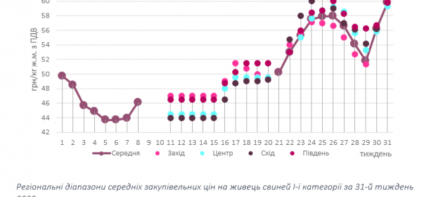 За результатами торгів на 31-й тиждень ціни закупівлі консолідувалися в межах коридору 59-61 грн/кг. Так, у …